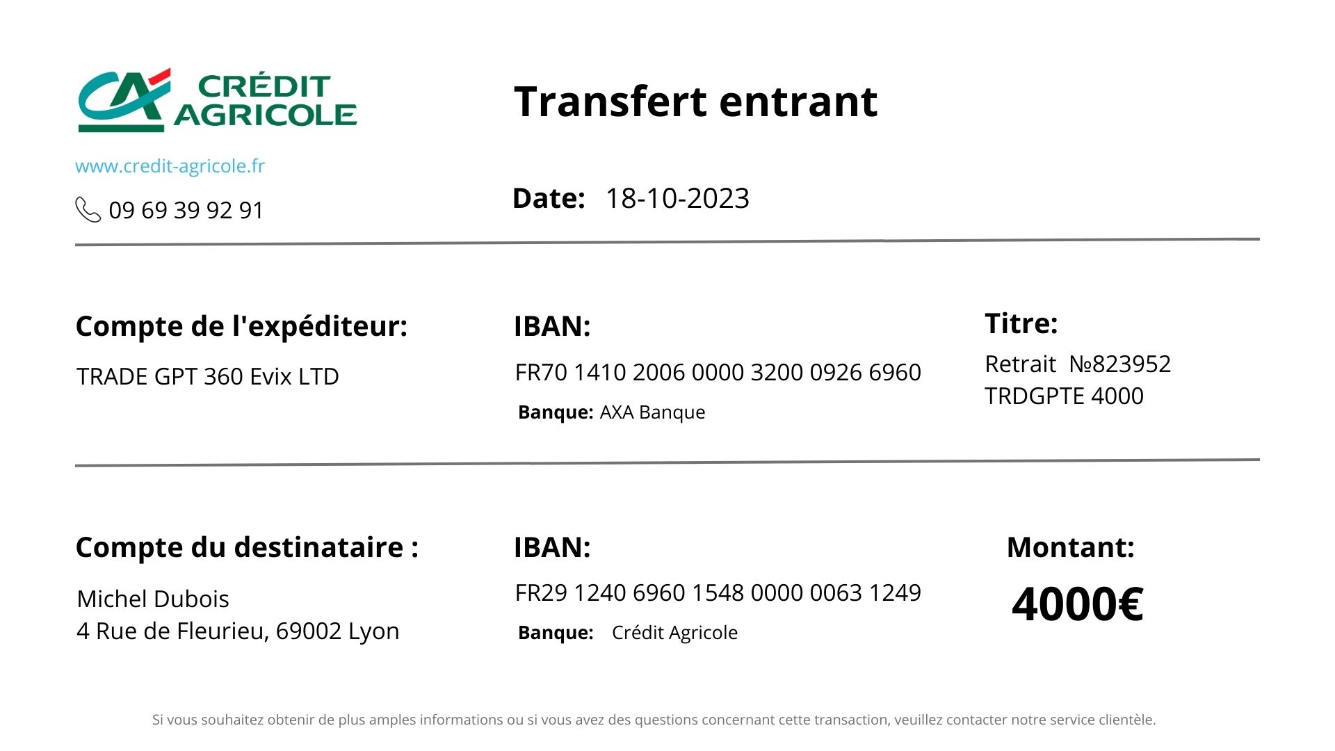 « Je n'ai pas vérifié le solde de mon compte sur la plateforme de toute la semaine. C'était assez difficile, parce que j'avais peur que mon argent ne soit plus là. Plus tard, lorsque je suis retourné sur mon compte, j'ai vu ceci : près de 85% de toutes les transactions ont généré un bon profit. 15% d'entre elles ont été des échecs. Cependant, cela s'est avéré payant. J'avais alors 4230 euros sur mon compte ! J'ai donc retiré 4 000 euros pour offrir un cadeau à ma femme. L'argent a été transféré très rapidement, en moins d'une heure, et le reste du montant a continué à me rapporter de l'argent. Voici une capture d'écran de la banque : fonctionne vraiment ! D'après mes calculs, si je n'avais pas retiré mes bénéfices, 4000 € se seraient transformés en un million en 11 semaines ».